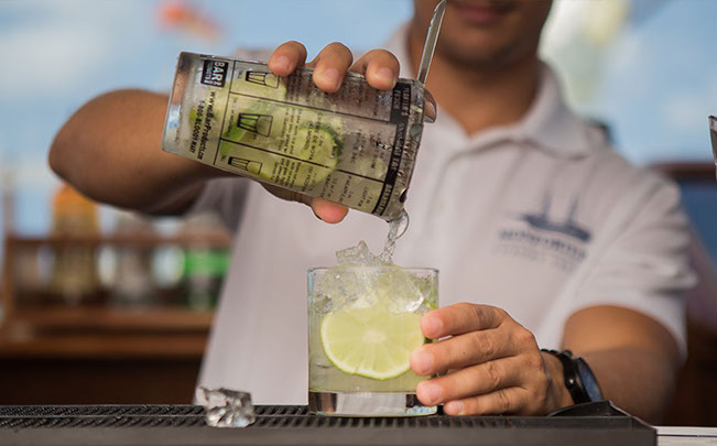 When you’re sailing with us, join us by the bar & Indulge in premium cocktails crafted by our very own skilled bartenders. The captain and crew have endured sleepless nights to taste & perfect unique cocktails infused with local flavors, which will pair elegantly with your excursion. Whether you are cruising to the south coast of the Island or enjoying a 5-course dinner prepared by the best chef on the Island, our cocktails will quench your thirst.